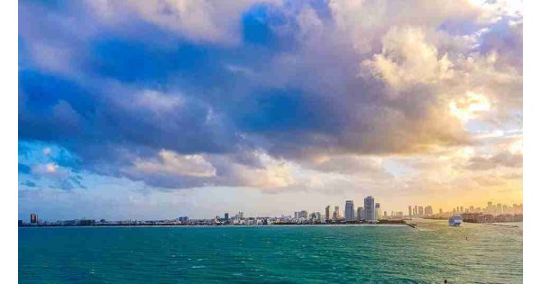 1. Yeşil ile menekşe rengi arasında bir renk, bulutsuz gökyüzünün rengi, mai
