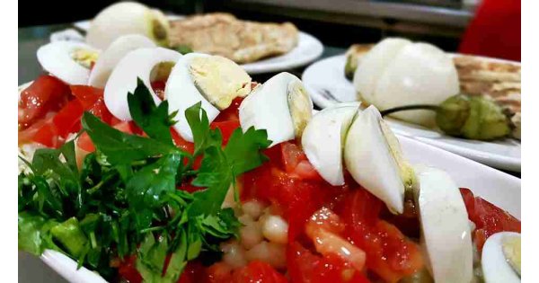 Salatanın içerisinde garnitür sebzeleri ve patates kullanılır.